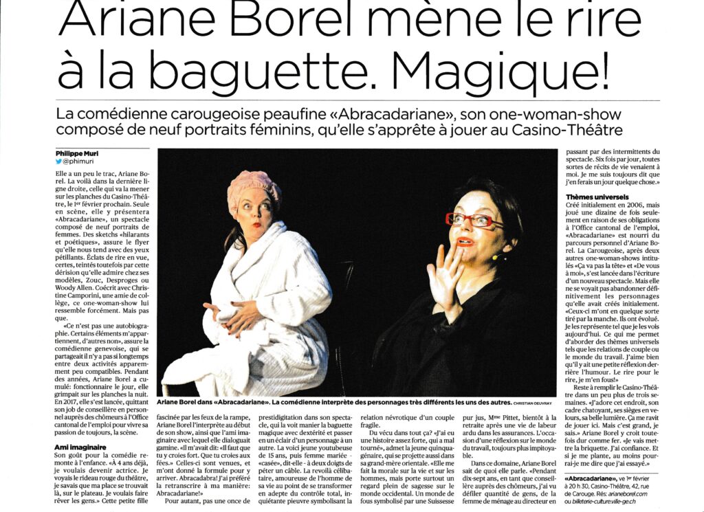 Comme associée et complice d’une magnifique artiste, Ariane Borel, qui nous a hélas tous quittés en 2020.
