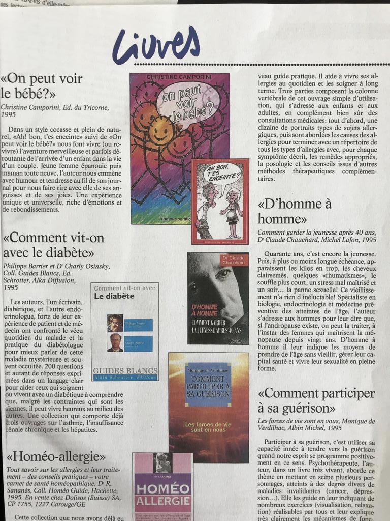 J’ai écrit deux livres best-sellers, publiés et distribués en Suisse et au Québec en 1993 et 1995 – Retrouvez ci-après une partie de ma revue de presse.